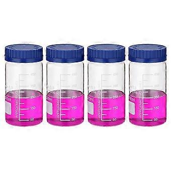 4 Pack Reagent Media Storage Bottles, Borosilicate Glass Wide Mouth Graduated Round Bottles with GL3