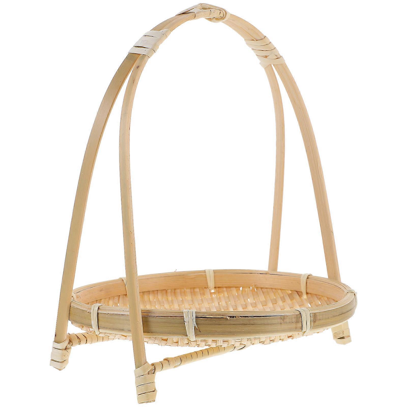 Handwoven Bamboo Serving Basket With Handle For Casual Gathering Multi Color Decorative Storage 1Pcs