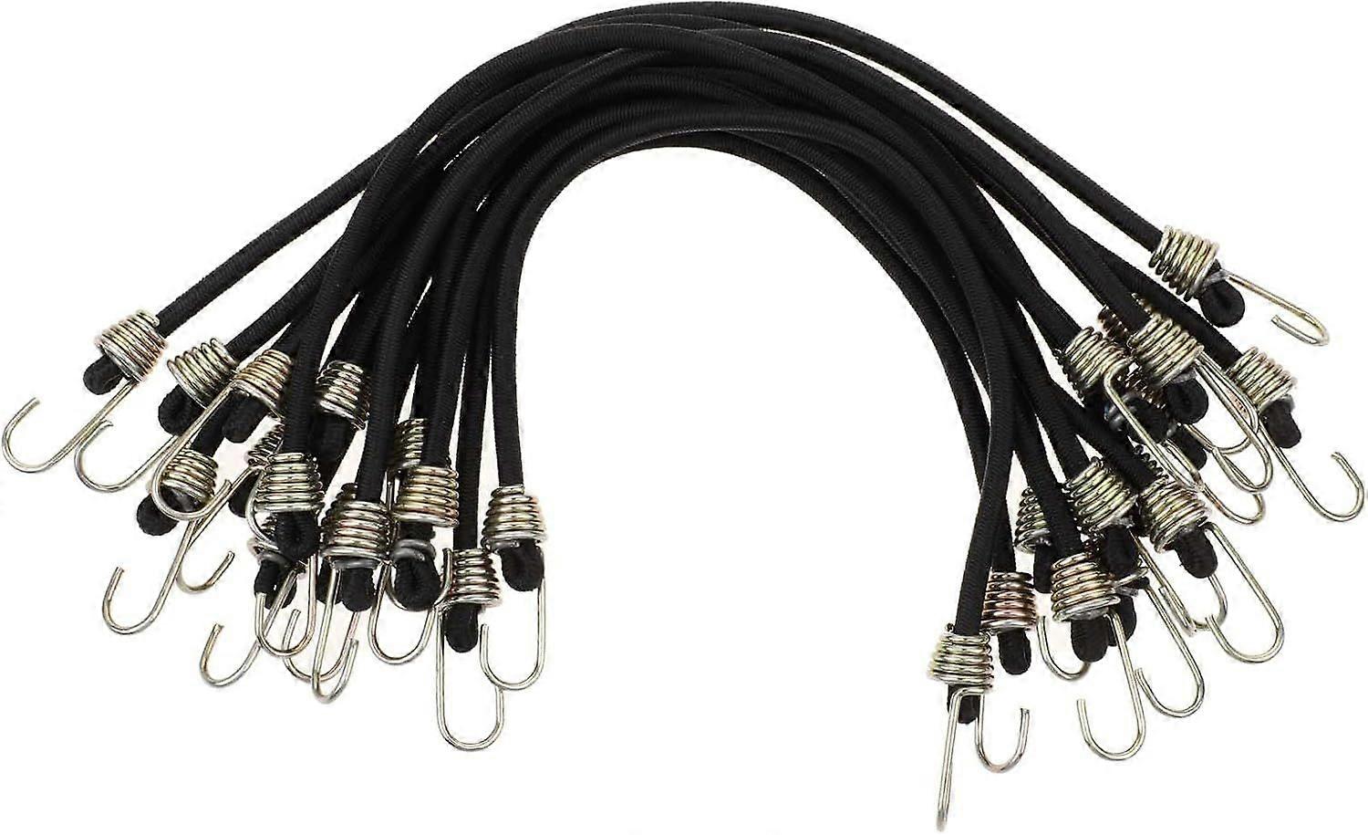 15-Pack Small Bungee Cords with Hooks 10-in Mini Black Rubber Bungee Cords Short