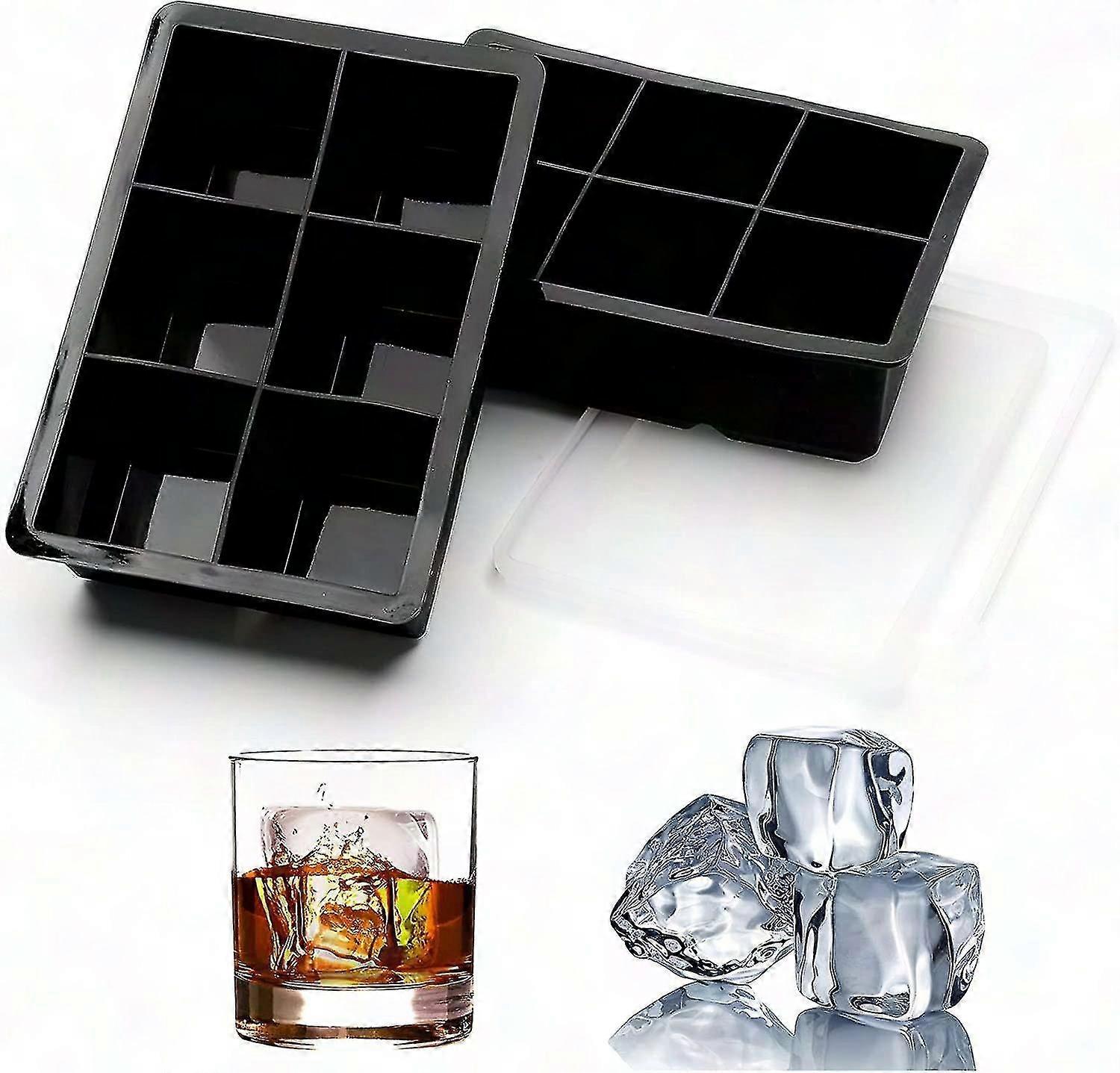 2-Pack Large Silicone Ice Cube Trays - Makes 12 Giant Square Ice Cubes