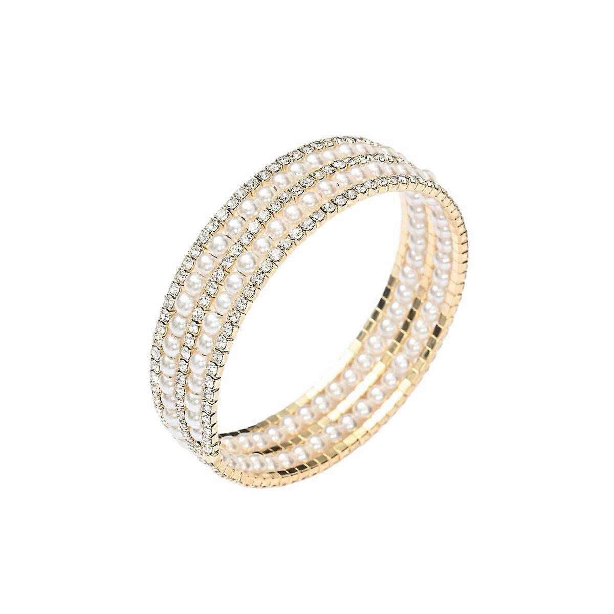 Pearl Bracelet, Women's Multi-layer Stackable Stretchy Diamond Inlaid Elegant Designer Bracelet