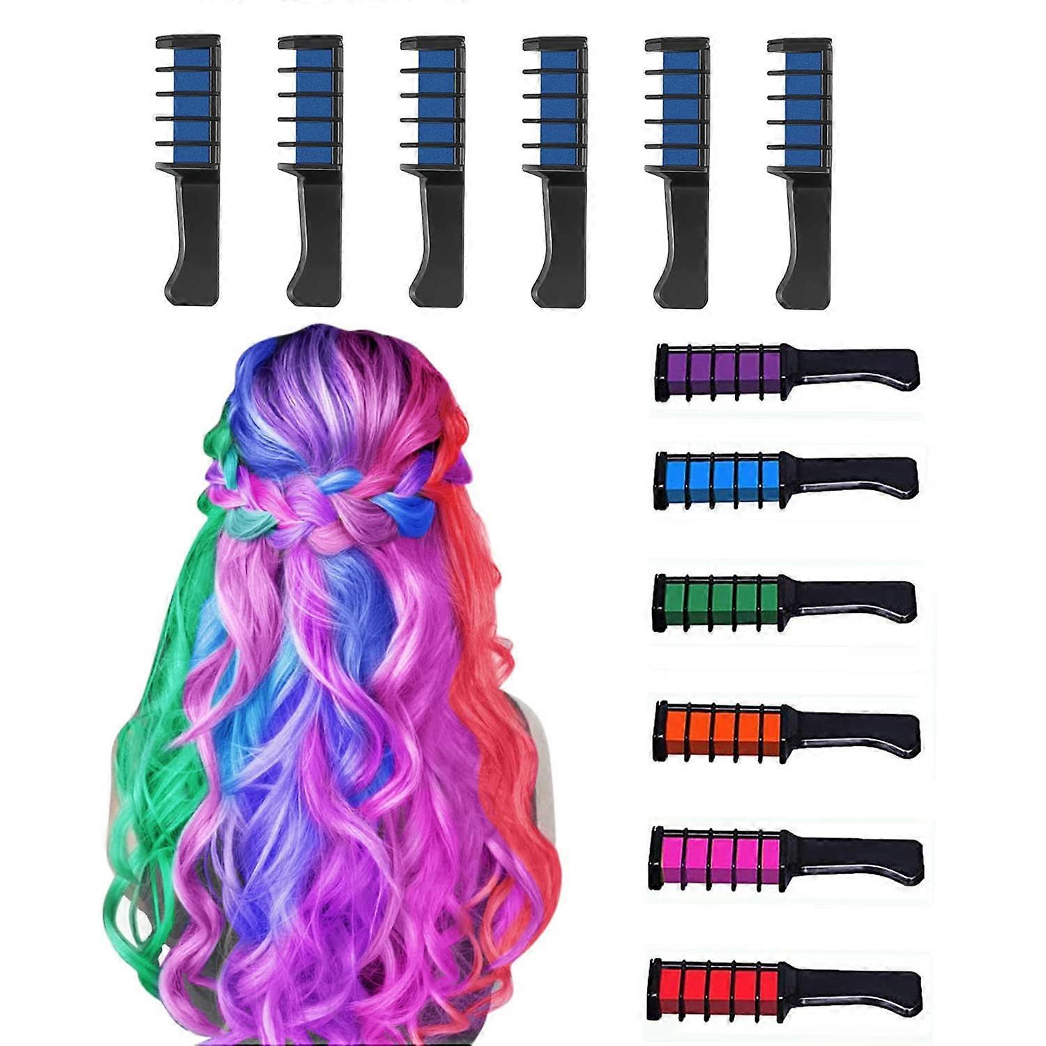6 Color Hair Chalk Comb Fluorescent Hair Chalk for Kids, Non-Toxic, Easy to Apply, Suitable for All Hair Types