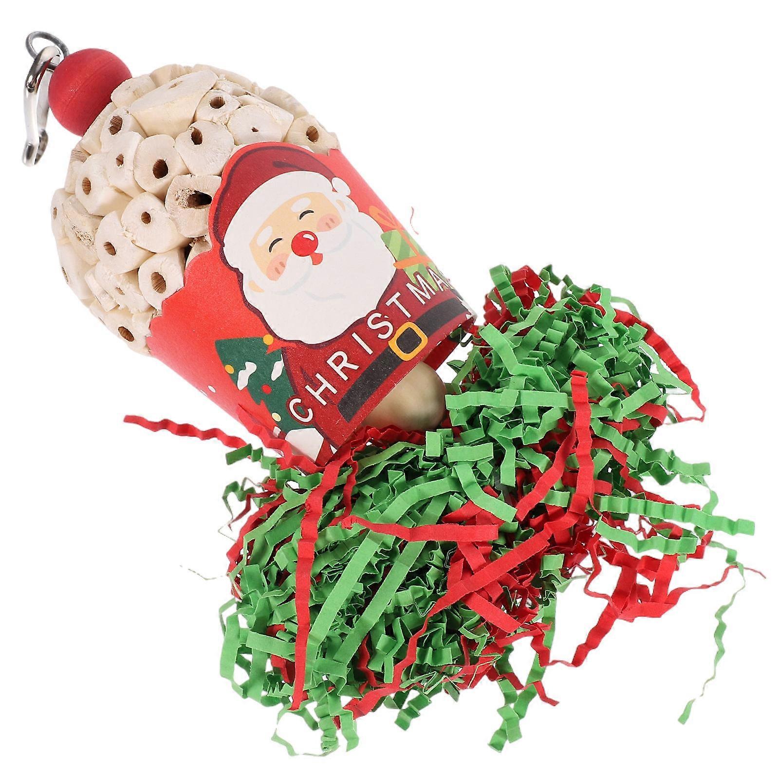 Parrot Chewing Toy Bird Hanging Toy for 5Pcs Xmas Theme Wooden Set