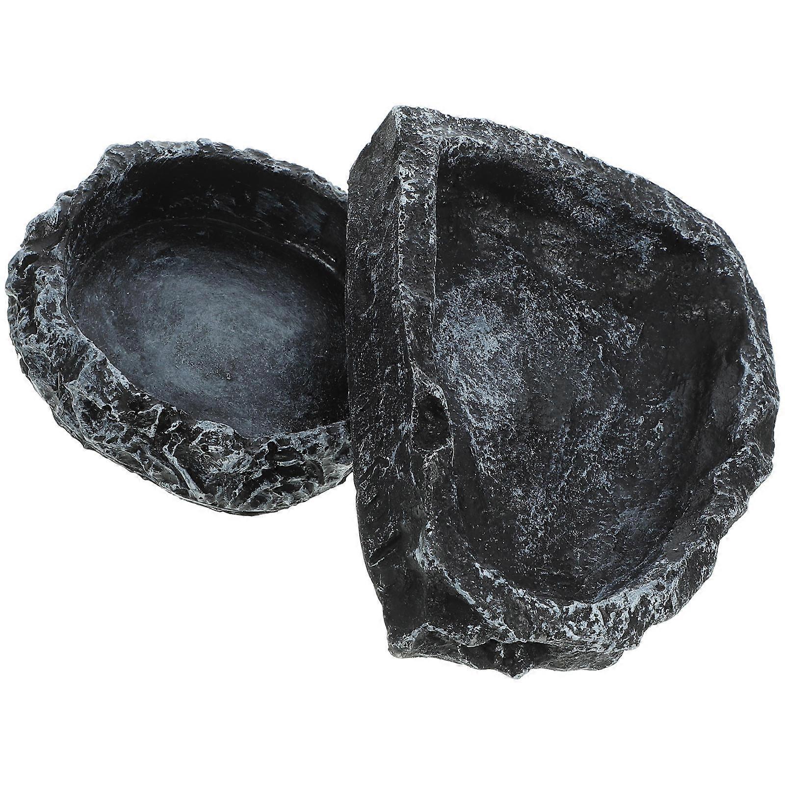 Small Reptile Water Dish Rock-Like Color Food and Water Holder For Reptile Husbandry 2Pcs