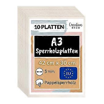 Creative Deco 10 x A3 Sperrholzplatte 5 mm | 420 x 300 mm | Dünne Holz-Zuschnitte laserfähig | Sperrholz Platte Baumaterial Creative Deco