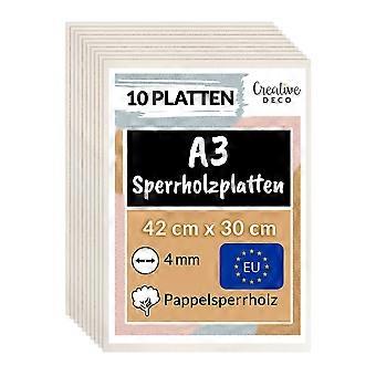 Creative Deco 10 x A3 Sperrholzplatte 4 mm | 420x300 mm | Dünne Holz-Zuschnitte laserfähig Sperrholz Platte Creative Deco