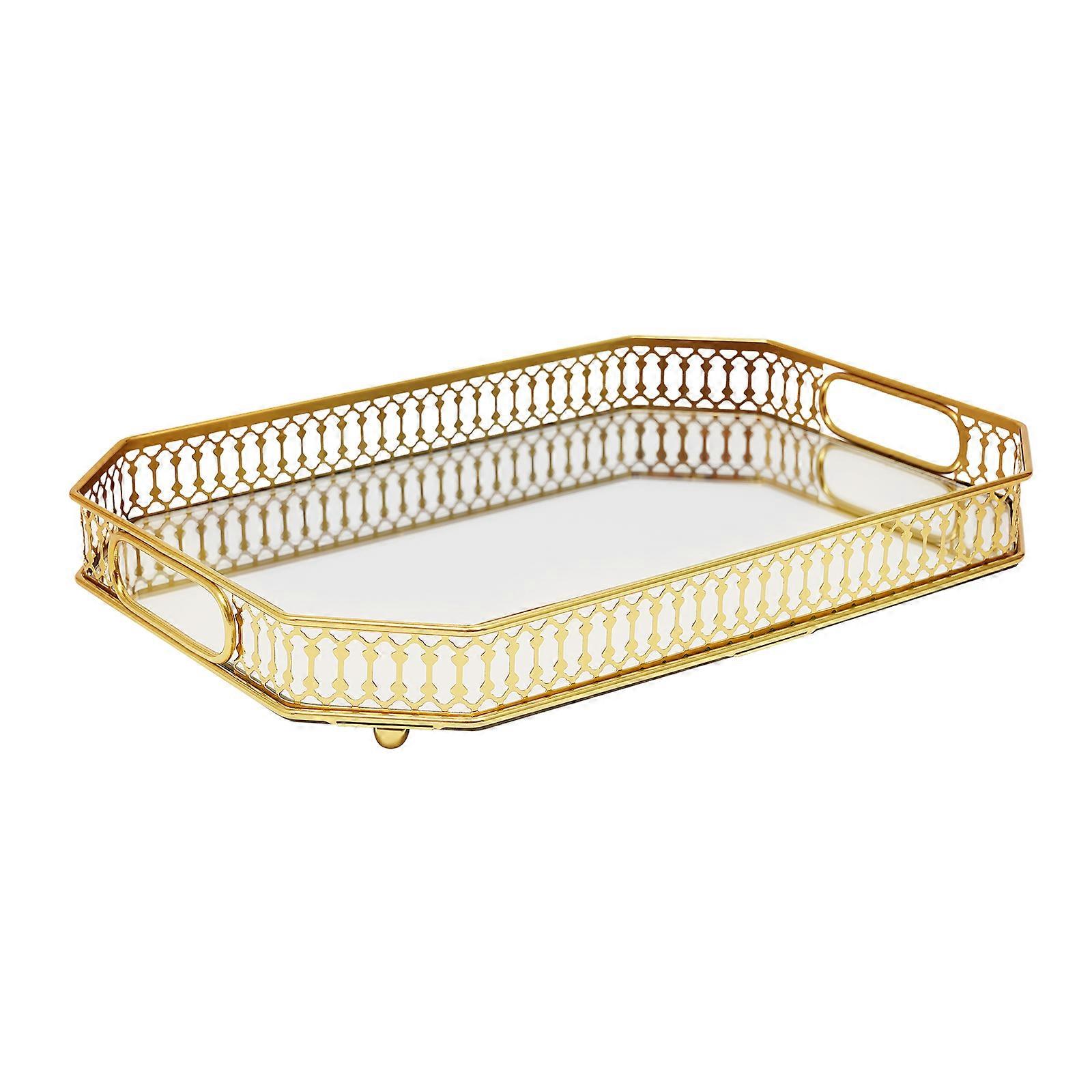Gold Rectangular Serving Tray 13.8x9.8 Inch, Electroplated Iron & Glass, Modern Home Decor, Multi-functional Storage Organizer