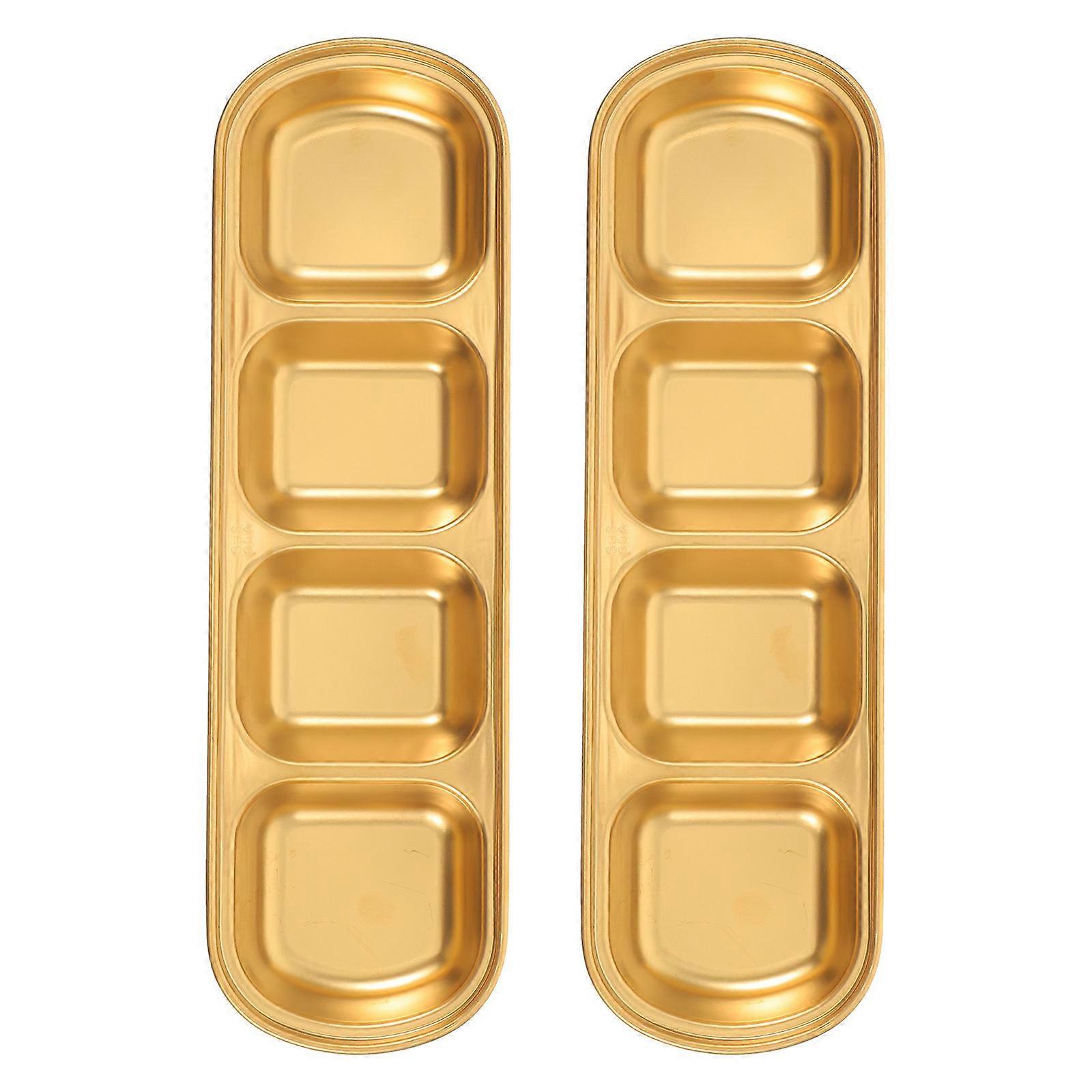 Dipping Sauce Dishes Stainless Steel Divided Plates for Home Use Golden Easy Cleaning 2Pcs