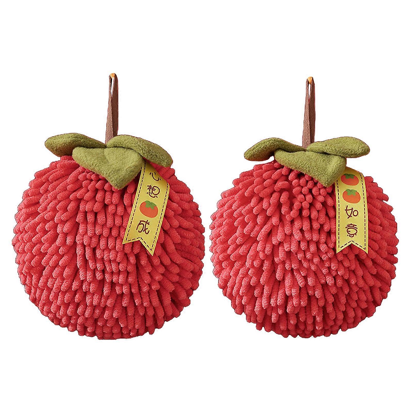 Pnellth Handball Hand Towels Soft Absorbent Microfiber Quick Dry Cute Persimmon Shape Design with Hanging Rope Chenille Hand Towel