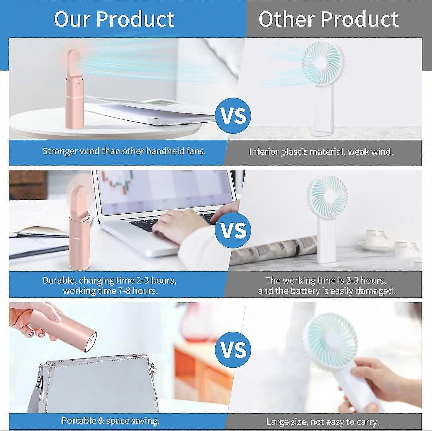 Portable Handheld Fan - USB Rechargeable Mini Fan with 2 Speed Adjustable for Personal Cooling