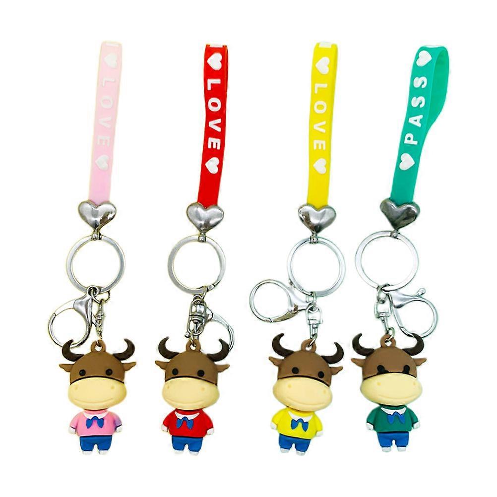 Keychain Cartoon Accessories Cow Keychian Clothing Accessory Chinese Zodiac Style Red Pink Yellow Green 15X36CM 1Set