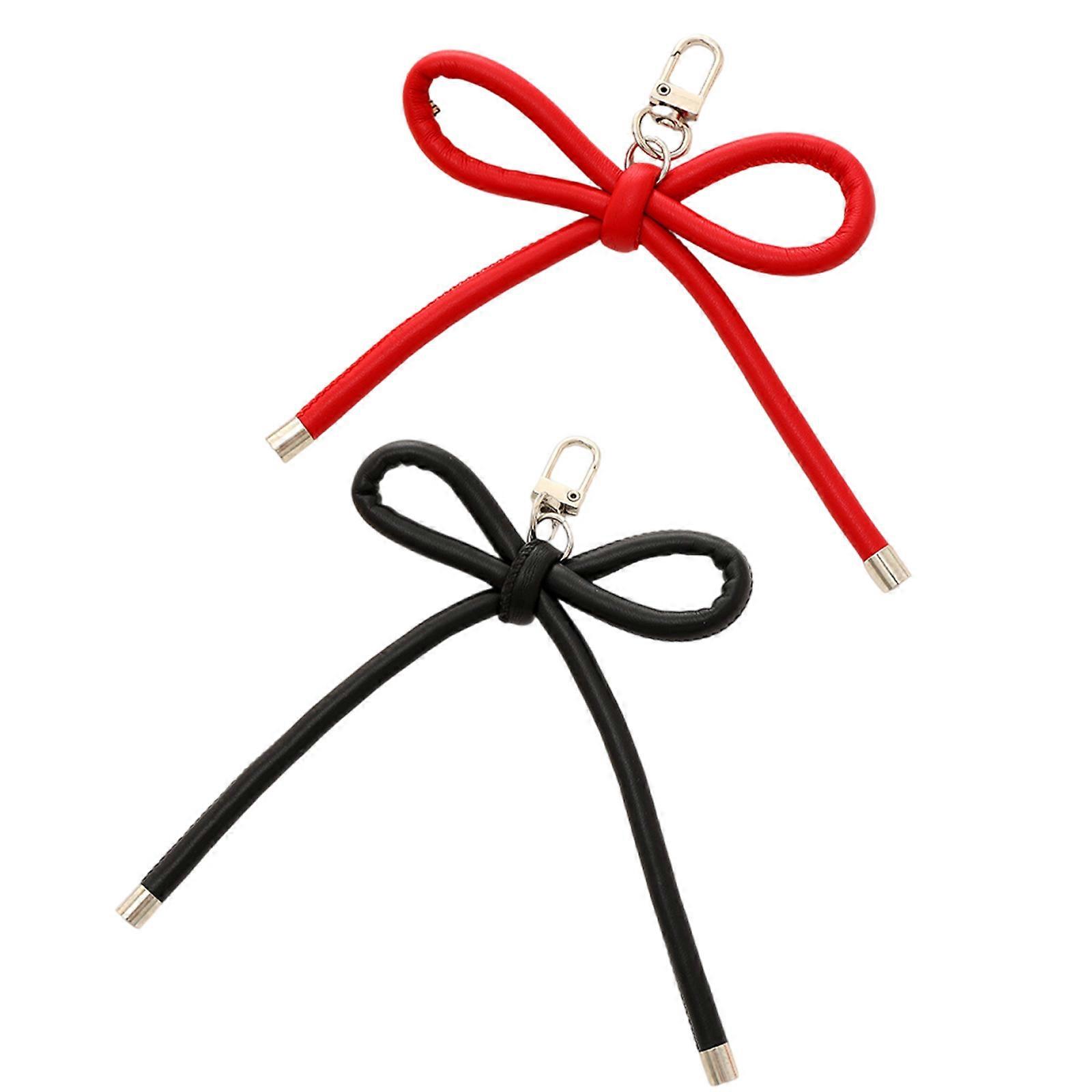 Elegant PU Leather Cord Keychains Sturdy PU Leather Bowknot Pendant Key Chain Unique Bag Accessory for Women Girl