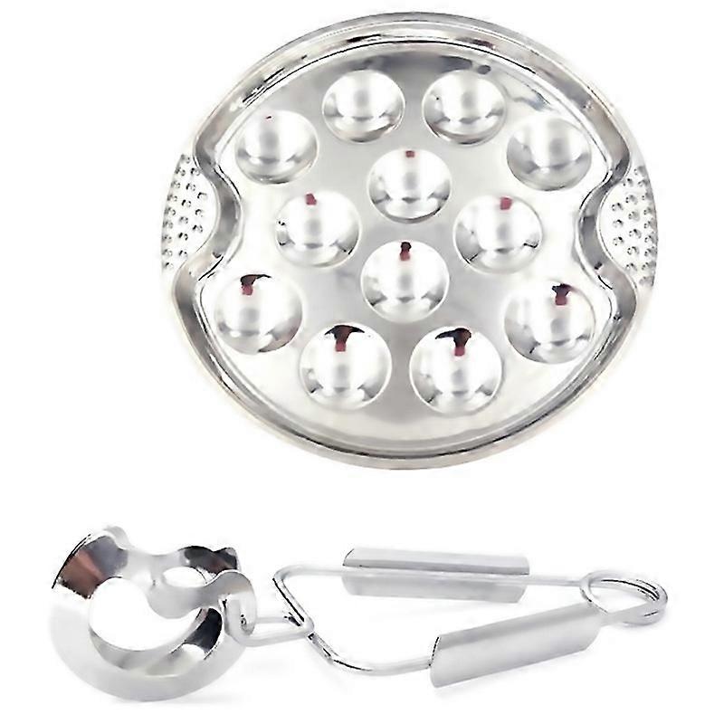 For 1 Set Of Stainless Steel Snail Mushroom Escargot Plate With 12 Compartments Grilled Snail Tool 1