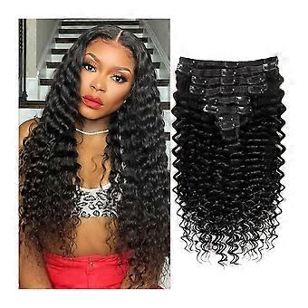 Extensions à clips en cheveux humains ondulés profonds de 56 cm (22 pouces), double trame Remy avec 18 clips sécurisés