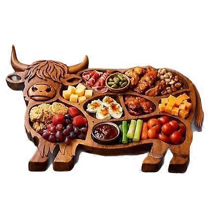 Highland Cow Wooden Serving Tray Style A, Rustic Compartment Charcuterie Board Wall Mountable for Meat