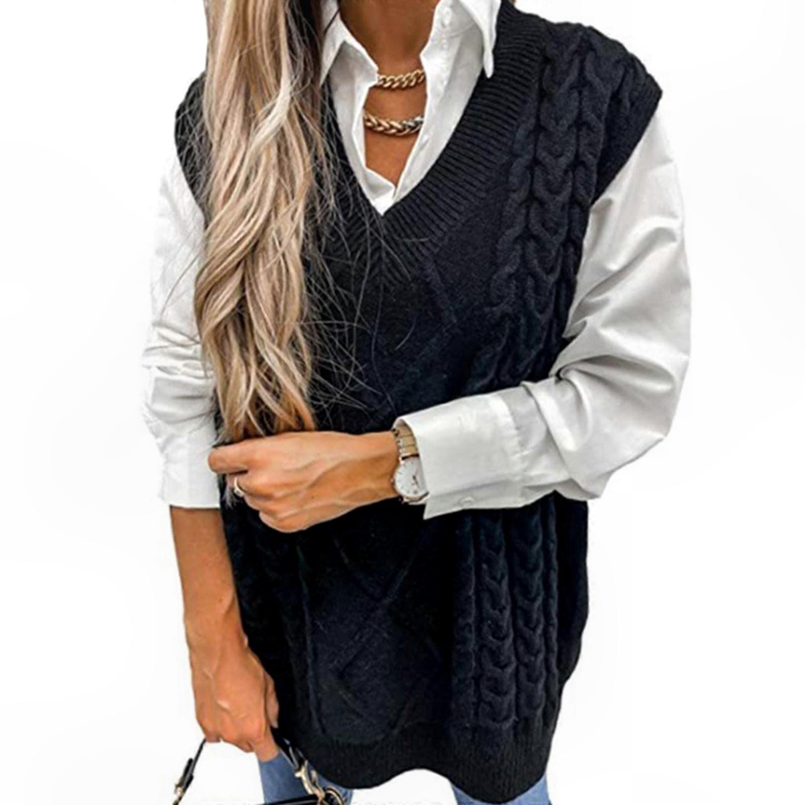 Women's Sleeveless V-Neck Cable Knit Plaid Pattern Sweater Top in Solid Maroon XL Size