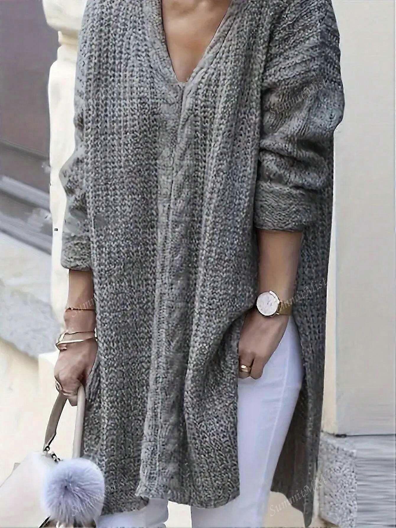 Plus Size Women Solid Color Knitted Sweater, Casual V-Neck Long Sleeve Pullover, For Winter