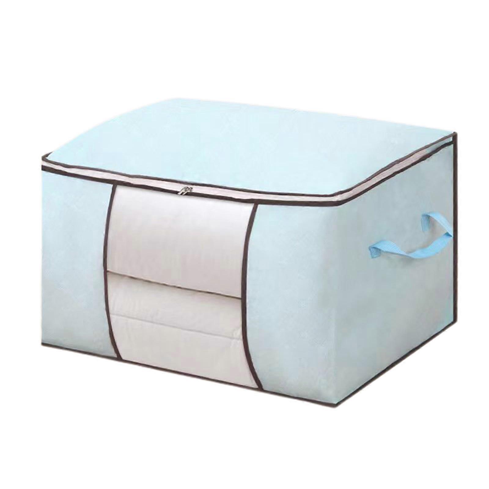 QTBIUQ Double Zipper Large Storage Bags Heavy Duty Storage With Reinforced Handles For Clothes Tote Bag For Space Saving Travel Light Blue