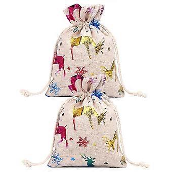 Sachets à bonbons à cordon, sacs cadeaux de Noël, lot de 6 en coton et lin imprimés