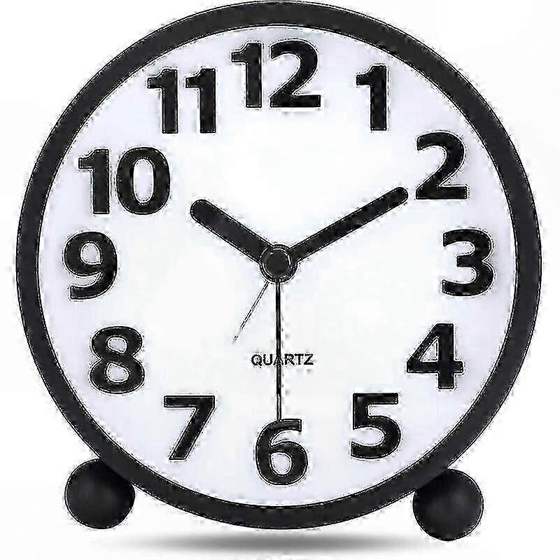 1. Stay Away From Numbers: This is an effective method if you want to reduce the number of numbers in the room. It's well built, attractive and efficient. 2. Silent Movement: Powered by 2 AA carbon-zinc batteries, the Silent Analog Alarm Clock features a precise quartz movement that does not tick and is suitable for light sleepers. (The analog clock alarm is not accurate to the minute. Generally, the error within 5 minutes is normal, please understand.) 3. Easy READ IN THE DARK: Press the nightlight button and the manual light will illuminate the entire dial, so you can see the time at a glance. Soft light and energy saving. 4. SIMPLE AND 3D DESIGN: ABS back cover, classic black metal frame and unique 3D digital design make up this alarm clock. Special three-dimensional figures are large and clear. The time can be easily checked from any corner of the room. 5. Wide range of applications: With a diameter of 10.8 cm, the dial is a practical and modern complement to headboards, desks and bedroom shelves. A great birthday or holiday gift designed for kids, boys, girls, teens and seniors.