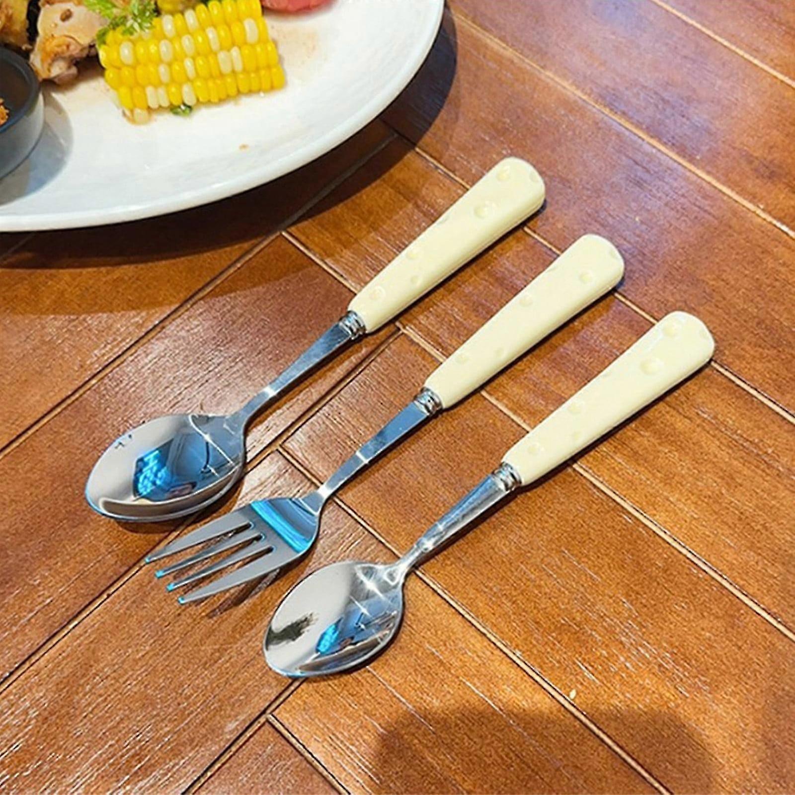 RFUGUG Cute Ceramic Cheese Tableware Set, Yellow Fruit Fork & Dessert Spoon - 2-Piece, Portable, Easy to Clean 2025