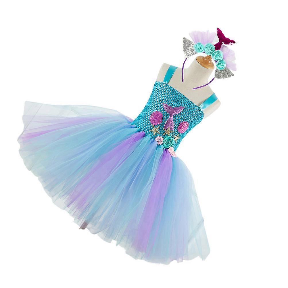 Girls Tutu Skirt Mermaid Style Dress for Kids Birthday with Hair