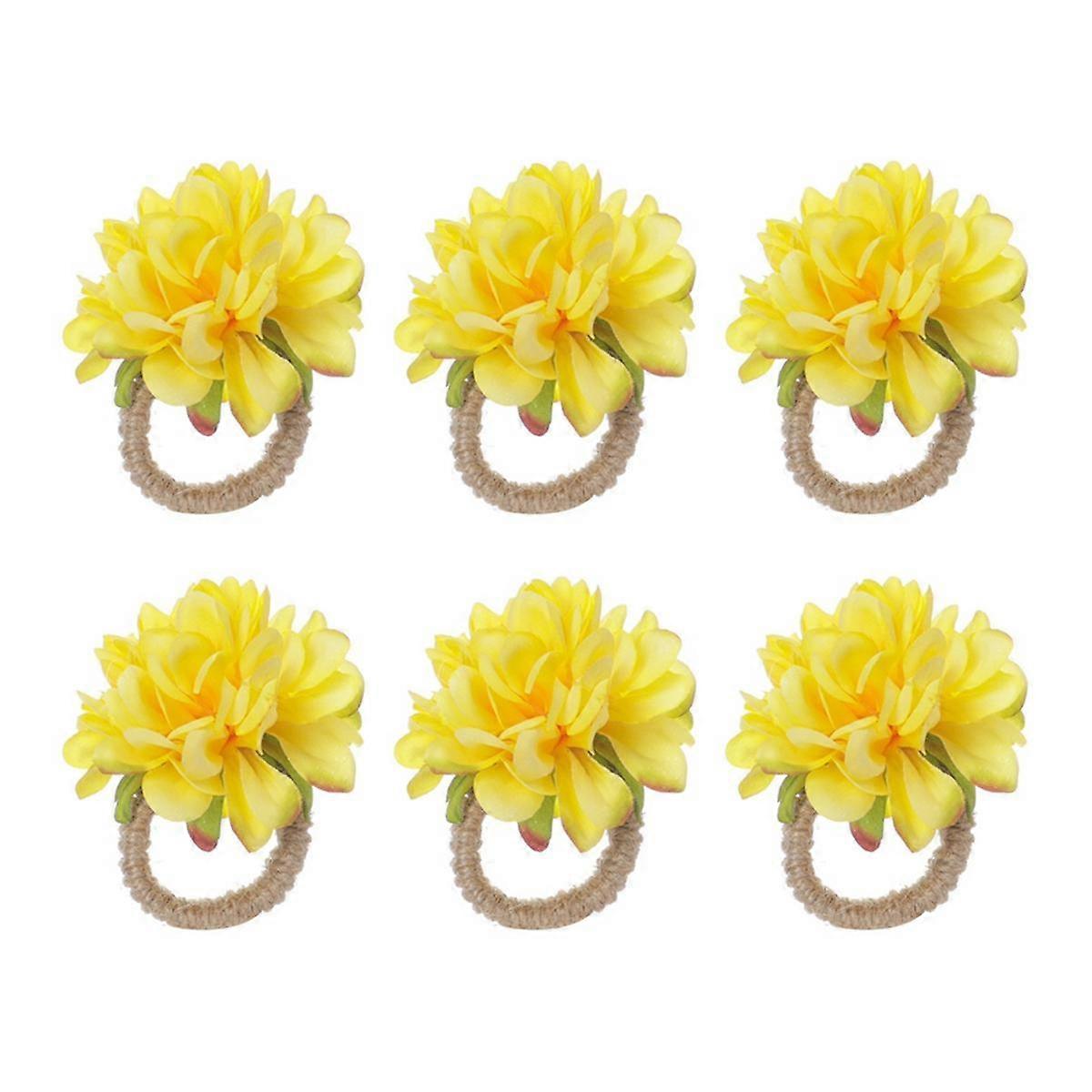 Pearl Napkin Rings , Rustic Rose Napkin Rings Flower Dinner Napkin Holder for Table Decoration Yellow