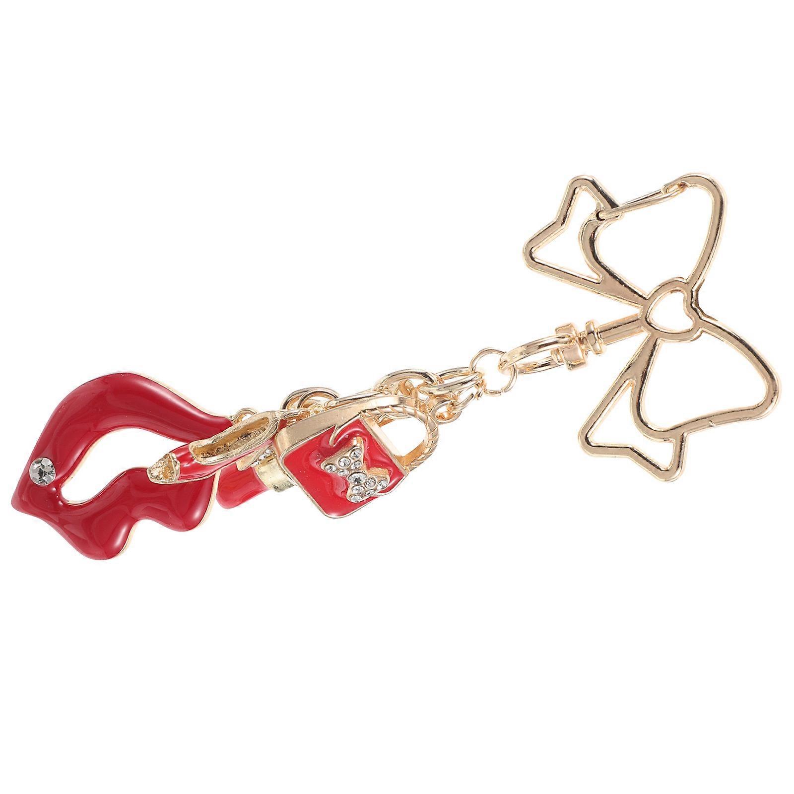 Lipstick Shaped Bowknot Bag Charm Keychain Stylish Handbag Pendant for Women, Durable & Versatile Aesthetic Accessory