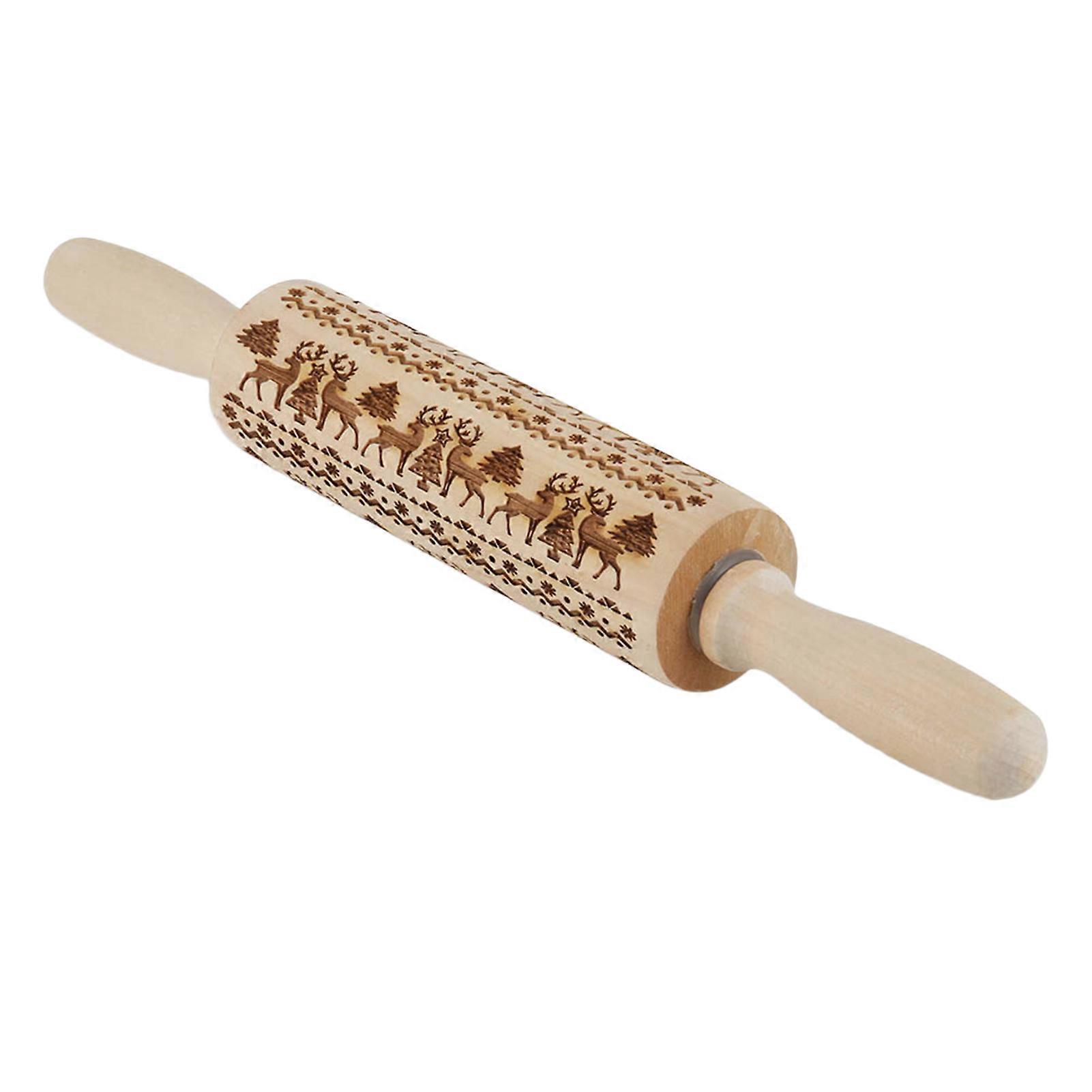 Christmas Rolling Pin Engraved Carved Wood Embossed Rolling Pin Kitchen Tool 43cm