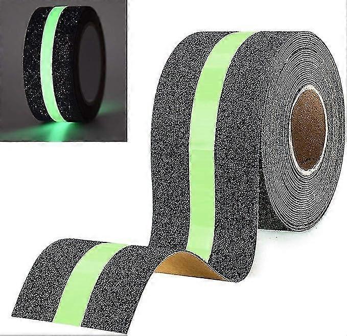 Non-slip adhesive tape with luminous film glows in the dark, safety tape for stairs, ladders, slippery floors indoors and outdoors, 10 m x 5 cm