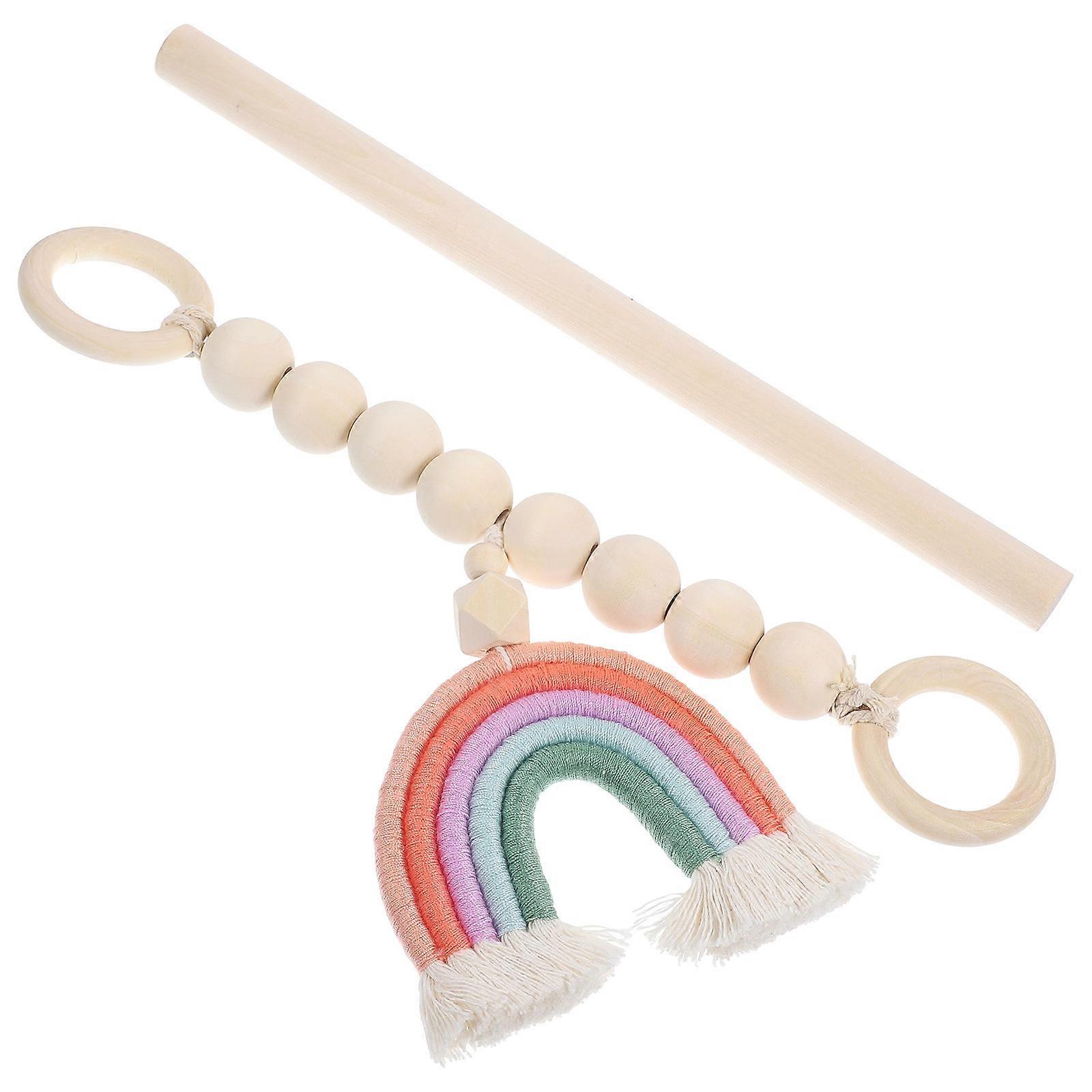 Rustic Wooden Beads Curtain Tieback with Rainbow Tassel 3Sets