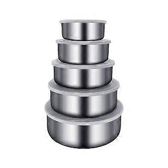 Ensemble de 5 boîtes de conservation en acier inoxydable, rondes et hermétiques, compatibles lave-vaisselle, pour la préparation des repas et le garde-manger – Compatibles avec FAJHHA