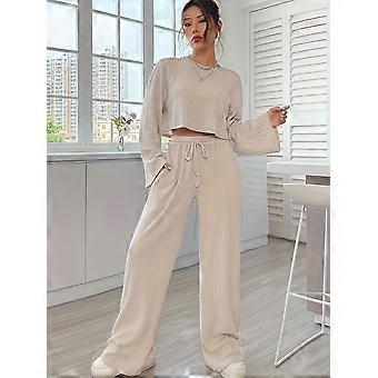 Summer Casual Fashion Shirt With Simple Solid Color And Half-Open Collar, High-Waisted Pants