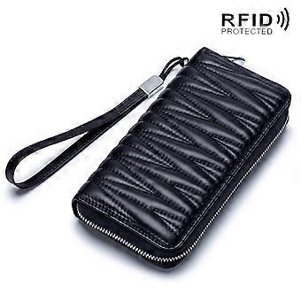 Portefeuille noir RFID pour femmes en cuir véritable Grand porte-monnaie à fermeture éclair à carreaux