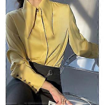 Chemise à manches longues en satin pour femme (taille 25-26), style décontracté, avec revers.