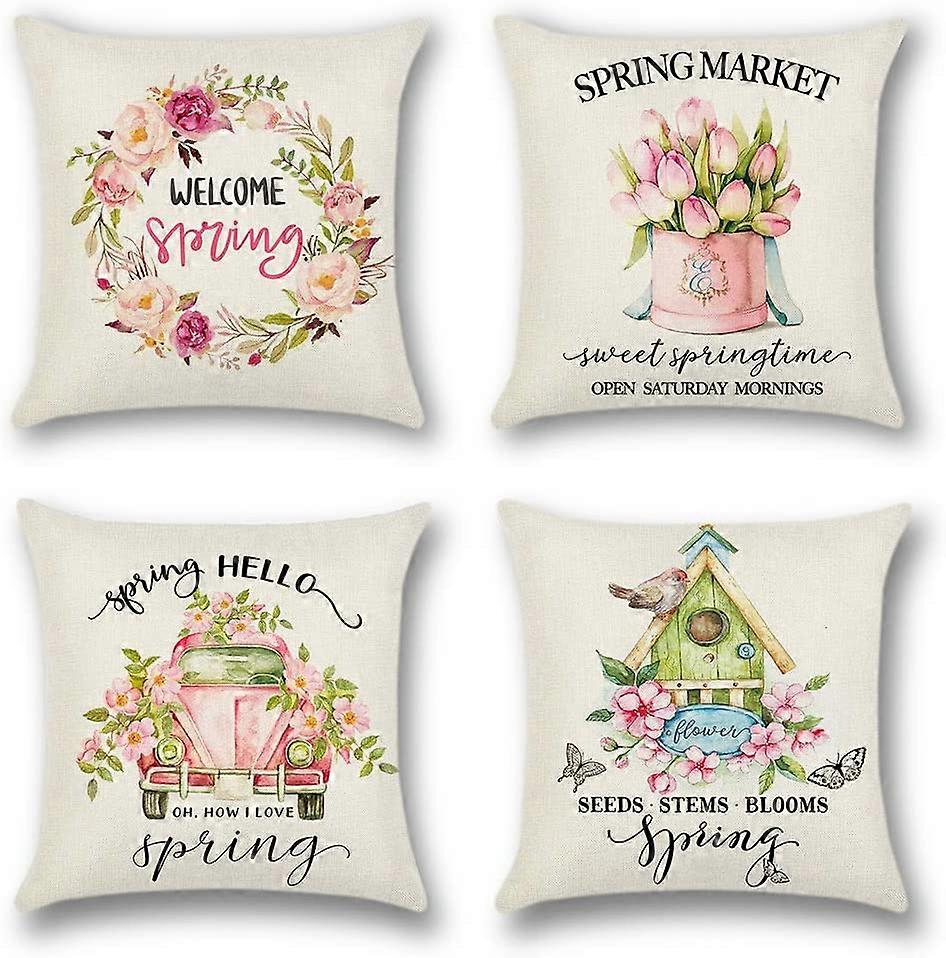 Set of 4 Spring Series Polyester Linen cartoon print Cushion Covers Decorative45 x 45 cm