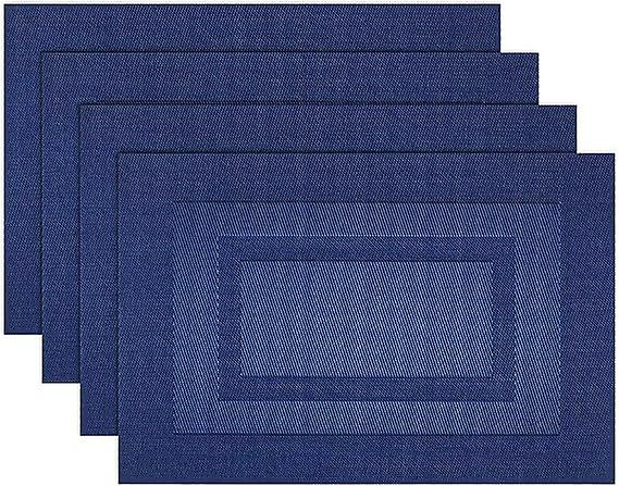 Placemats, Washable Vinyl Woven Table Runners, Elegant Table Placemats Set Of 4 (45.72 X 30.48 Cm, Navy)