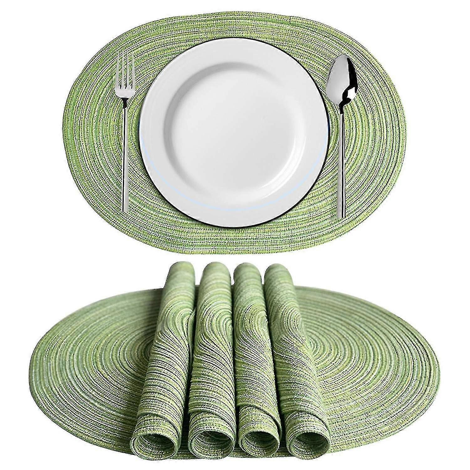 Washable oval placemats for kitchen table, 19.6x13.7 inch (green,brown,grey,yellow)