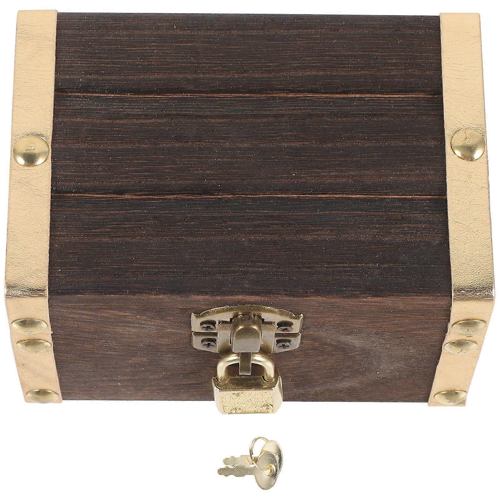 Small Treasure Box with Key Multi-Function Storage 3Sets Dark Brown Wood
