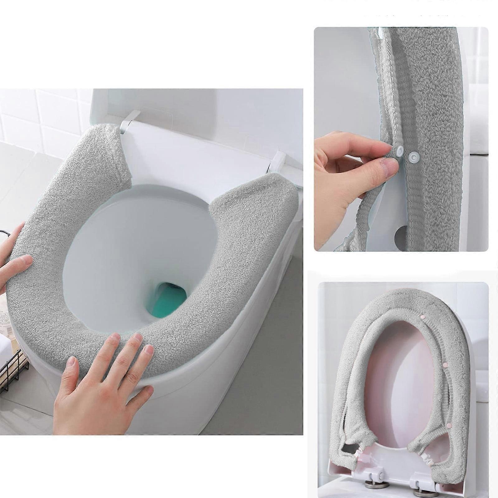 Soft Thicker Warmer Toilet Seat Cover with Snaps, Stretchable & Washable, Reusable Pads Compatible with Standard Seats
