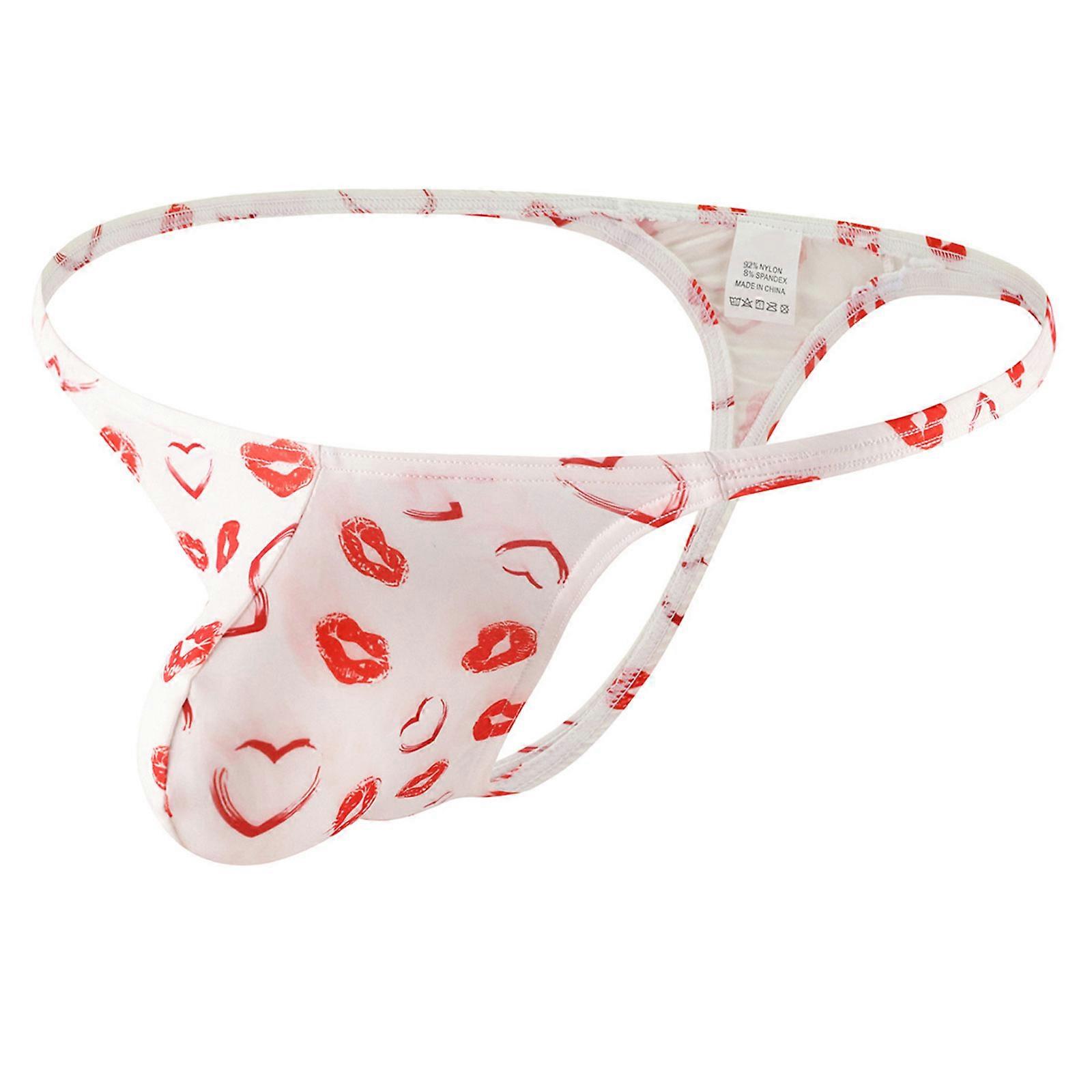 Men's Thong Underwear Breathable Low Rise Under Panties Bikini Underpants Kisses Print G-Strings Thong White XL
