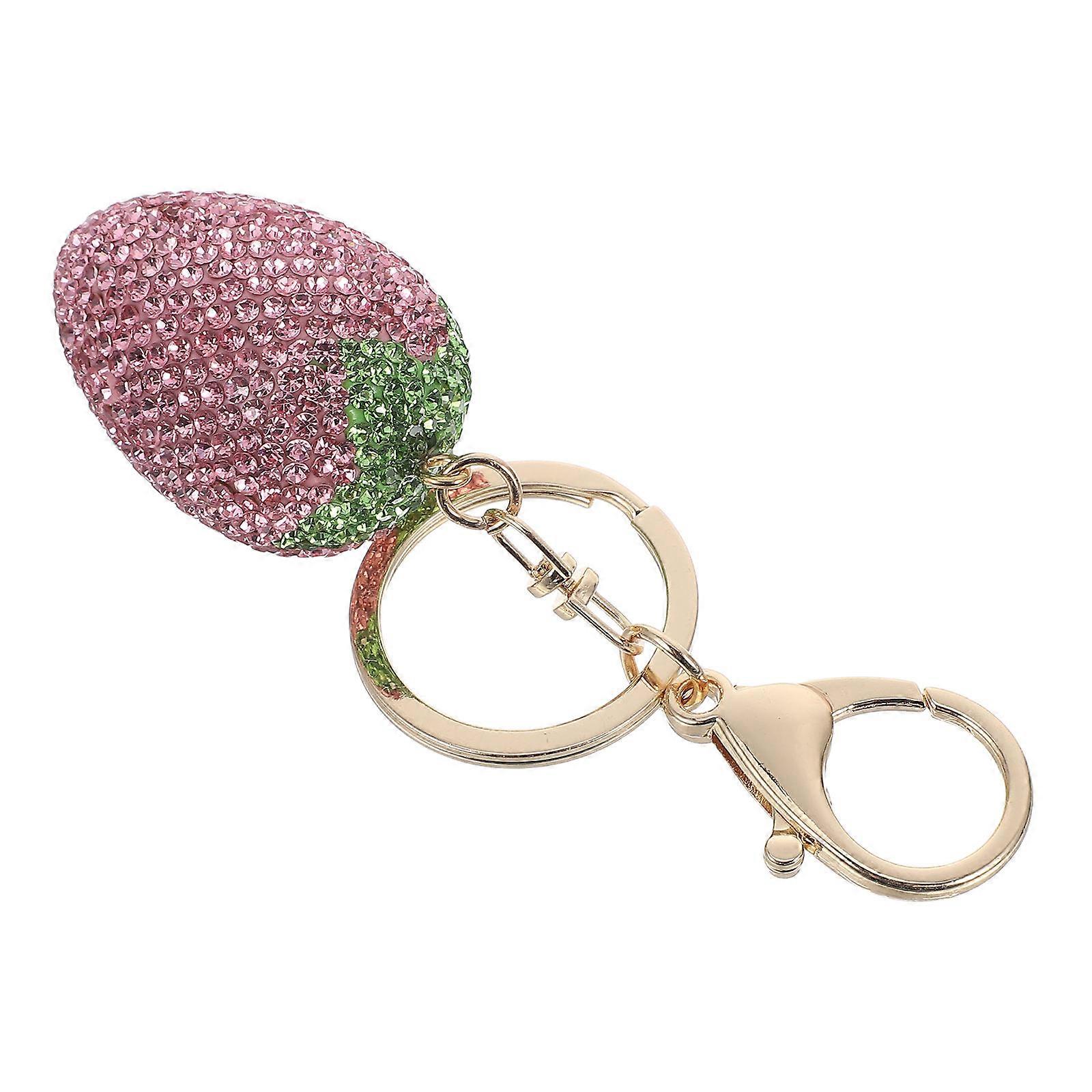 Rhinestone Strawberry Keychain Cute Bag Charm Lightweight Decorative Accessory for Backpacks Purses Car Keys Handbags