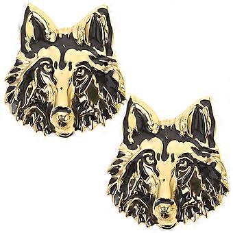 Lot de 2 autocollants loup pour voiture | Emblème/insigne métallique en forme de cœur | Autocollants animaux pour pare-chocs, phares, téléphone ou ordinateur portable (doré)