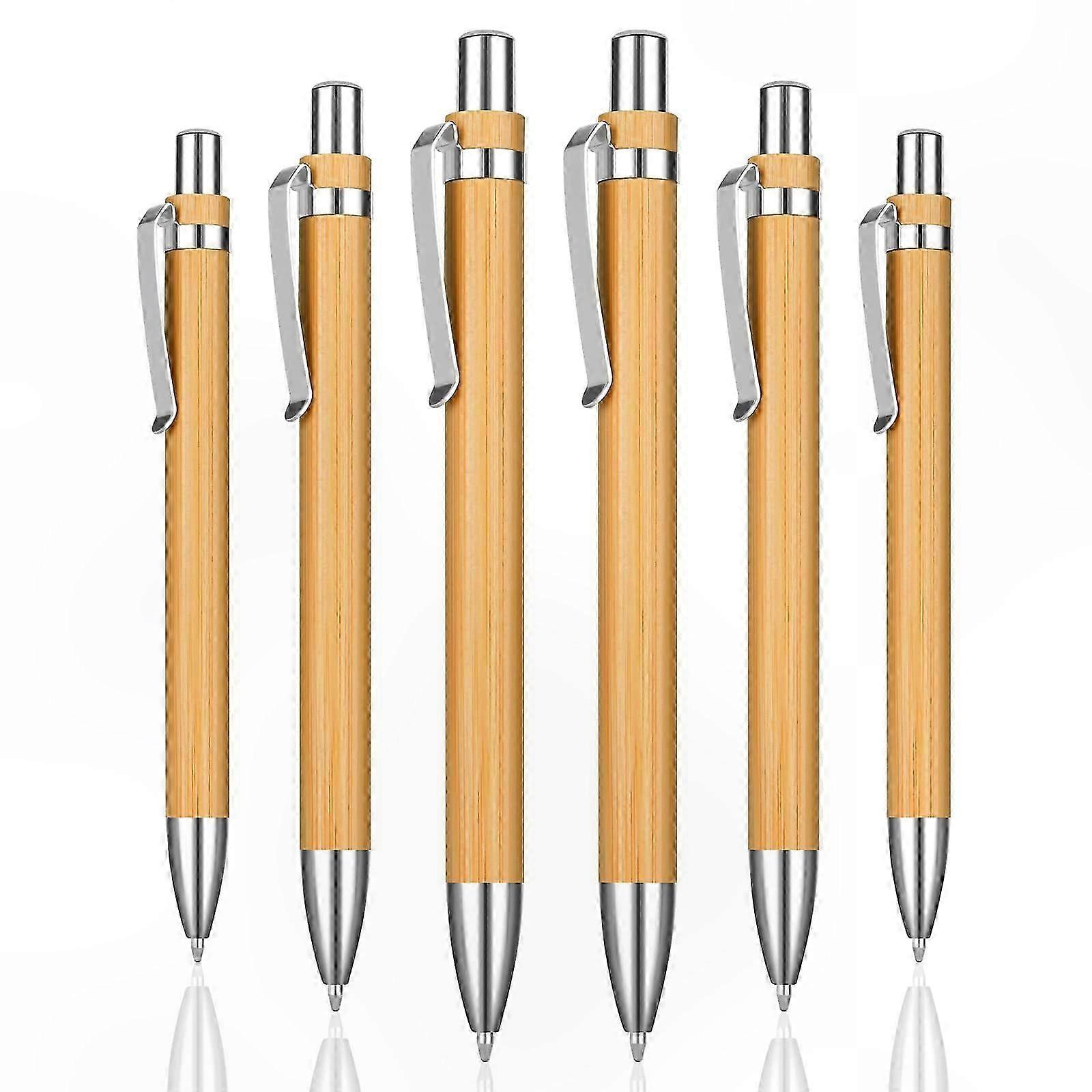 Retractable Medium Point Ballpoint Pens, Black Ink Bamboo Pens, 6 Pack Eco-Friendly Writing Instruments