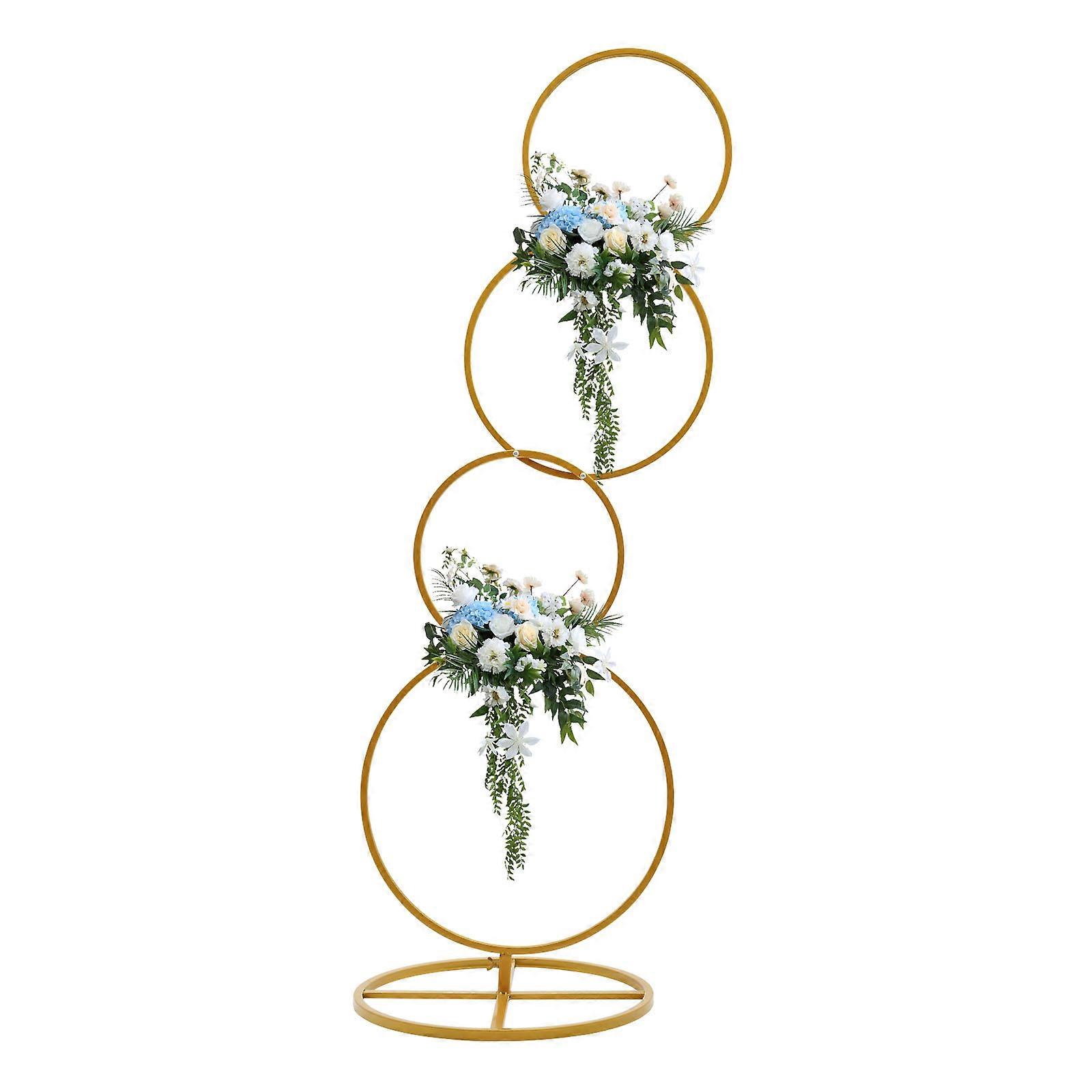 Gold Iron Hoop Flower Stand - 5.02ft Adjustable Wedding Backdrop, 19.7in Base, Modular Design for Events & Home Decor