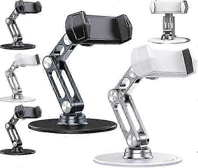 Features 1. 360 free rotation design, angle adjustment, universal mobile phone tablet, aluminum alloy pivot, foldable and portable. The 360 rotating disc can rotate at any time to meet the angle requirements of different occasions 2. Strong damping, load-bearing without falling, with aluminum alloy shaft locking and fixing rings at both ends and nylon resistance washers to enhance bearing capacity and stabilize support. 3. Ready to use, easy and fast, portable to operate, easy to access and place your phone/tablet, and enjoy leisurely moments. 4. The comfortable angle can be adjusted at any time, and the bracket adopts a dual axis mechanism design. The angle and height can be double adjusted to find a comfortable viewing angle at various heights. 5. Heavy carbon steel base without tilting. Aluminum alloy support rod, carbon steel weighted base, mechanical increasing center of gravity design, stable support, anti tipping. Specification Material: Plastic Color: Black, Silver Size: 14 x 9 x 9 cm Weight: 355 g Package Include: 1x 360 Degree Rotating Bracket