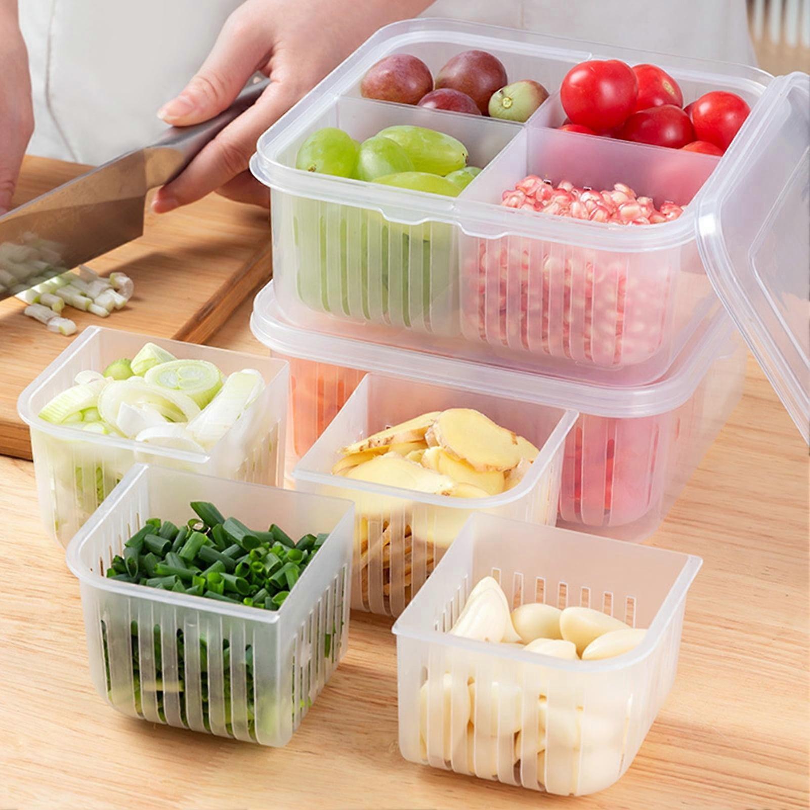 SUSUchens Food Container 4 Compartments Water Draining Plastic Rectangular Stackable Fruit Vegetables Storage Box Kitchen Accessories