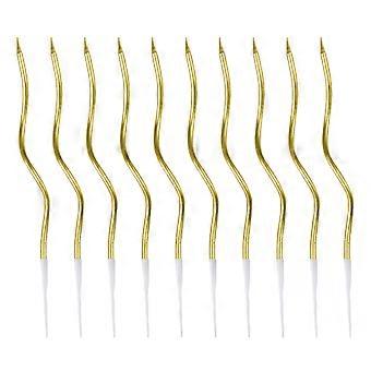 Lot de 6 bougies décoratives incurvées et fonctionnelles, plaquées or, multicolores, idéales pour décorer gâteaux, anniversaires et fêtes.