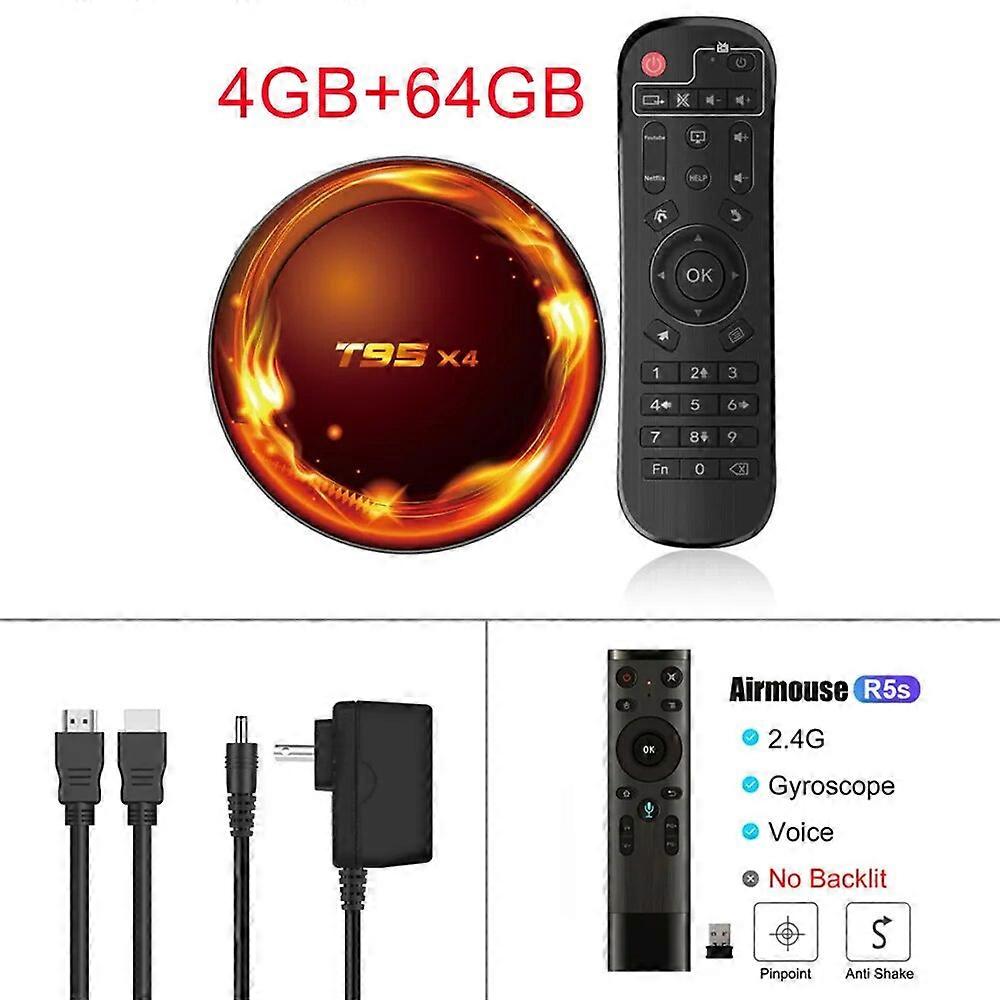 T95X4 Android 11 Smart TV Box Amlogic S905X4 4GB RAM 32G 64GB ROM AV1 2.4G 5G Dual WiFi 100M 8K HD YouTube Set Top Box