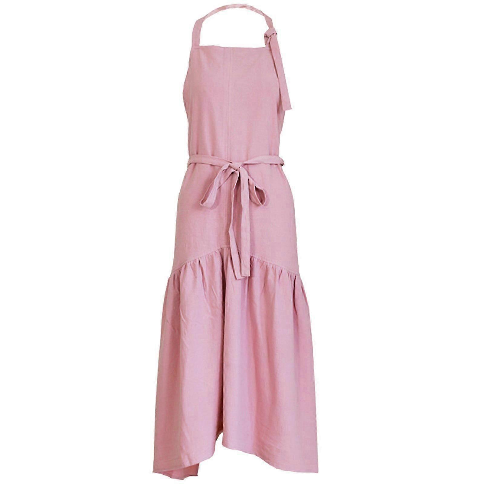 Cotton Linen Apron for Women Plain Work Apron Pinafore Dress Adjustable Casual Apron for Cooking Gardening Coffee Shop